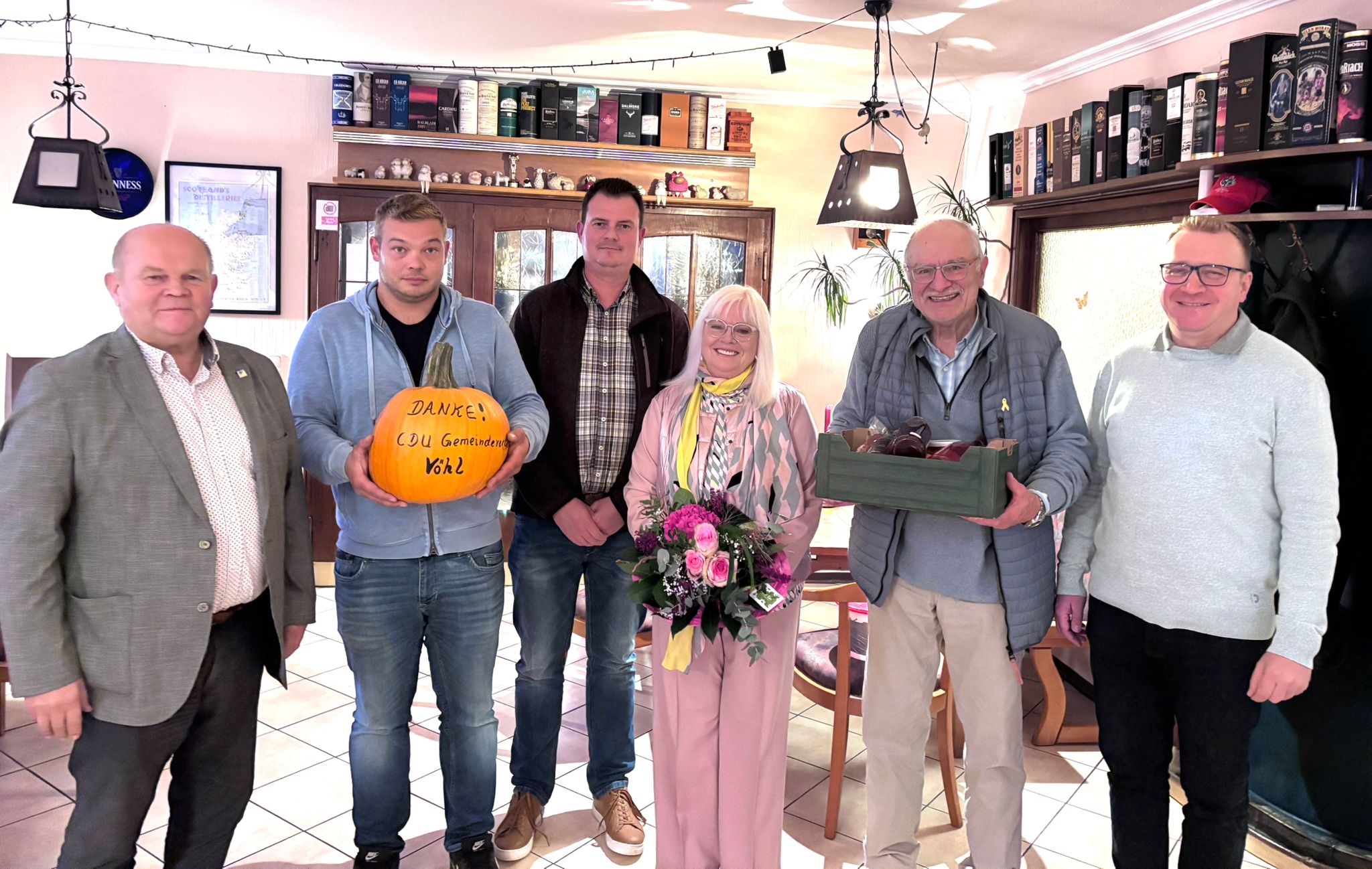 Die Mitgliederversammlung bot Gelegenheit für den Austausch über die aktuellen kommunalpolitischen Herausforderungen und Schwerpunkte der kommenden Wahlperiode. Nach der Begrüßung durch den Vorsitzenden Gertmann Sude wurden zunächst die Mandate geprüft und die Versammlungsleitung bestimmt. Anschließend berichteten der Vorsitzende Gertmann Sude und der Fraktionsvorsitzende Matthias Kubat über aktuelle Themen aus der Gemeinde Vöhl. Im Anschluss erfolgten die Wahlen: Zum neuen Vorsitzenden wurde Martin Obst gewählt. Unterstützt wird er von den stellvertretenden Vorsitzenden Heinrich Klein, Karl Brüne und Matthias Kubat. Schriftführerin ist Lena Knoche, als Schatzmeister wurde Karl-Josef Walmanns im Amt bestätigt. Das Vorstandsteam komplettieren die Beisitzer Katrin Walmanns, Nick Albrecht, Andreas Schimana, Fritz Schäfer und Axel Bock. Zur Mitgliederbeauftragten wurde Amelie Obst gewählt, als Medienbeauftragter übernimmt künftig Ricardo Winter die Öffentlichkeitsarbeit des Gemeindeverbandes. Zudem wurde die Delegiertenliste für den CDU-Kreisparteitag beschlossen. Ein besonderer Moment der Versammlung war der Dank und die Anerkennung für den ausscheidenden Fraktionsvorsitzenden Gertmann Sude und seine Frau Brigitte, die viele Jahre die Arbeit der CDU in Vöhl mit großem Engagement unterstützt haben. Gertmann Sude hat als Fraktionsvorsitzender mit Weitblick und Beharrlichkeit wichtige Akzente für die Gemeinde gesetzt. Sein Einsatz und die Unterstützung durch seine Frau Brigitte verdienen höchsten Respekt und herzlichen Dank.
